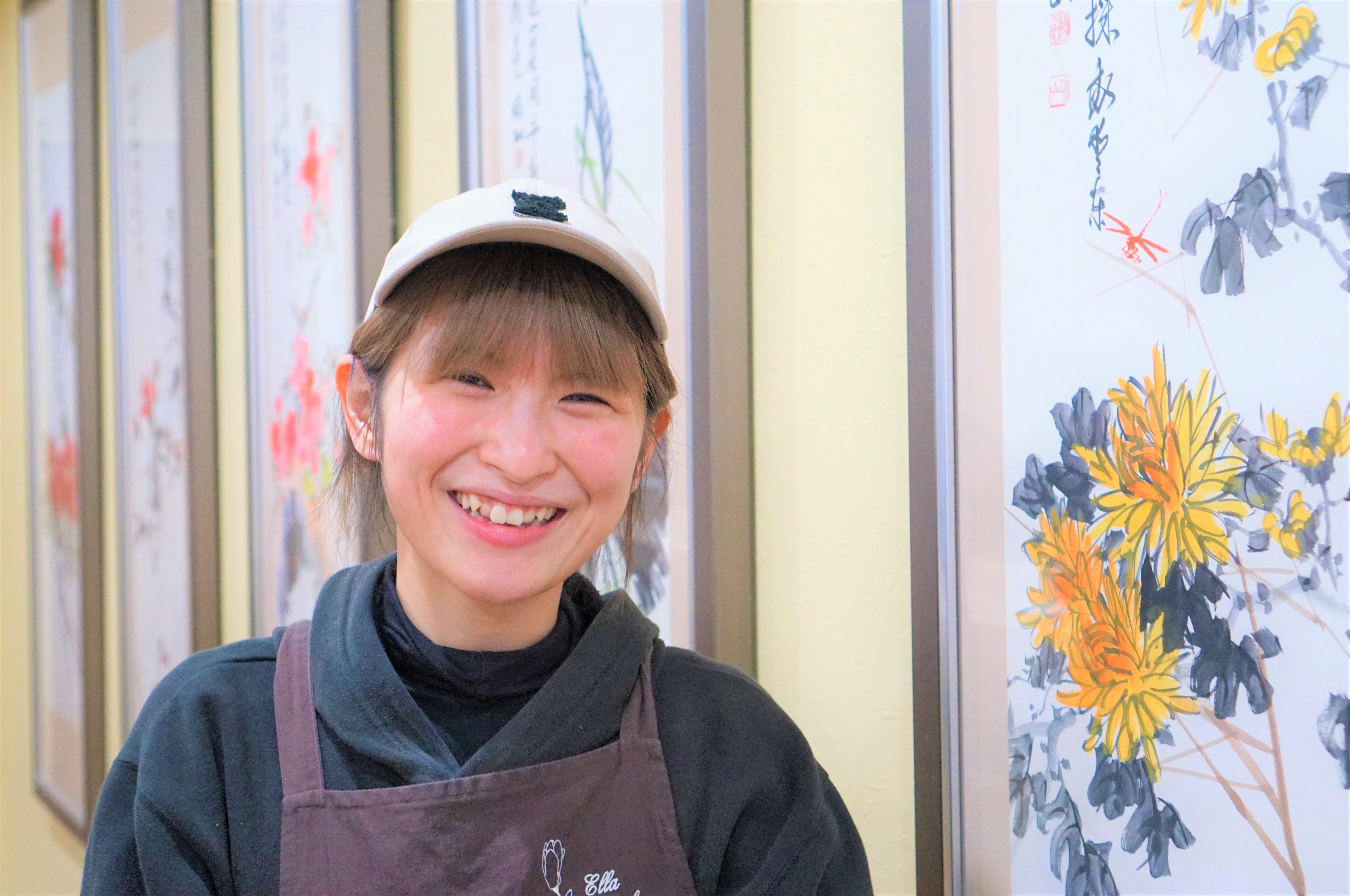 明るい笑顔で接客する大長愛(だいちょうめぐみ)さん。 店名の“Ella(エラ)”は、幼少期に一時期韓国で暮らしていた頃の愛さんの呼び名なのだそう。 |